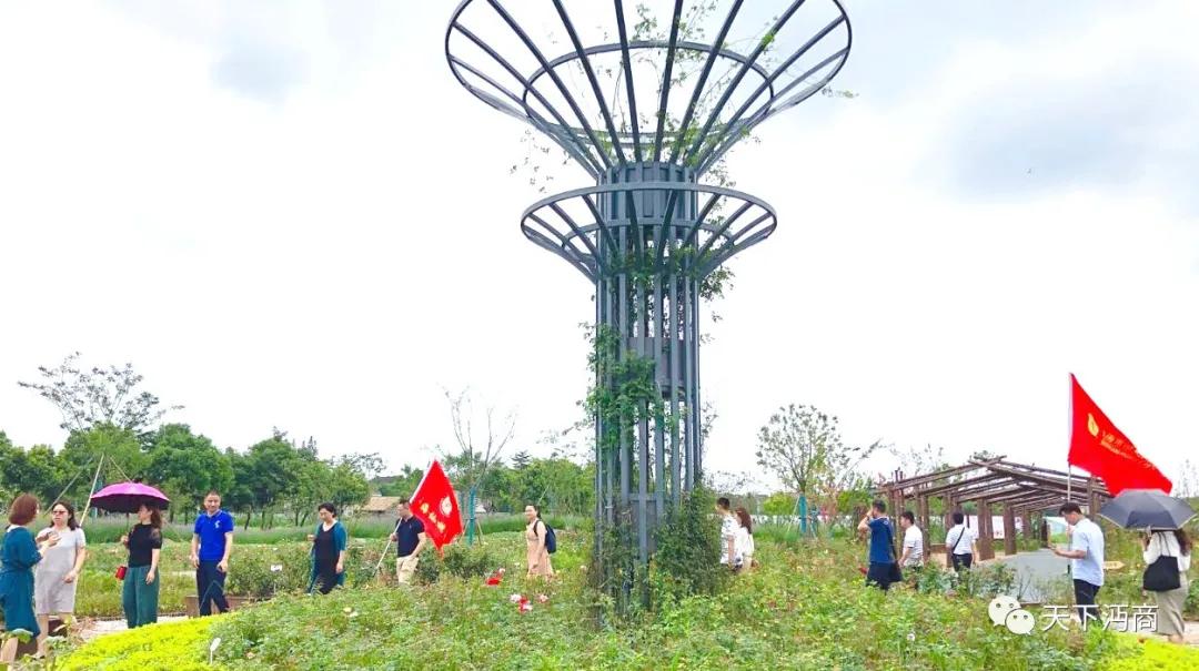 在农庄负责人的介绍下,大家参观游览了千亩农庄花博园、蔬菜基地、瓜果大棚以及鱼塘荷花池等。农庄草木芬芳,繁花飘香,亭台楼阁,阡陌相通;瓜果满枝,鲜蔬满园,荷花满池,鱼蟹满塘;一派繁荣丰收的景象。